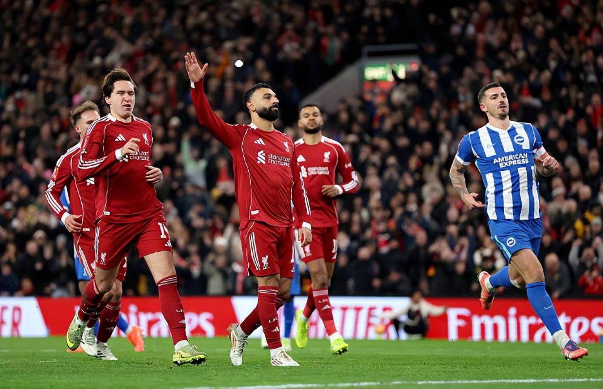 上半场红军虽多次制造威胁,却一度被越位陷阱限制。加克波的头球破门被吹,更像是进球潮来临前的预热。第 42 分钟,凯尔凯兹左路灵动送出倒三角传球,琼斯拍马赶到抢射得手,安菲尔德瞬间沸腾。这粒进球不仅打破场上平衡,更彻底击垮了布莱顿的防守信心,为下半场的进攻狂潮埋下伏笔。